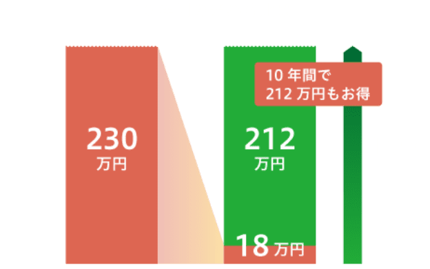 10年間で比較すると、一般住宅が200万円もの光熱費がかかるのに対し、26万円とグッと抑えられます。